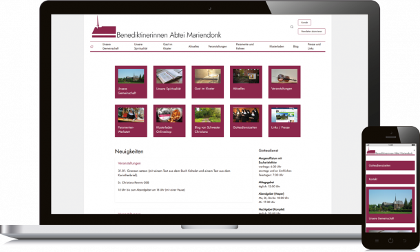 Die Schwestern der Abtei Mariendonk sind technisch auf dem Stand der Zeit. Das Projekt hat viel Spass gemacht. Hier war der Augenmerk auf die eigene Pflege der Veranstaltungen und des Bereiches "Aktuelles". Das klappt alles prima.